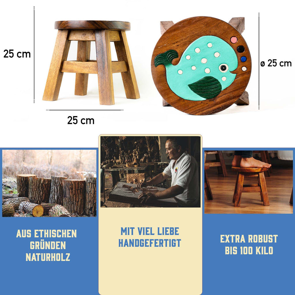 Kinderhocker Holz Hocker - motiv "Kleiner Wal" | Handbemalt