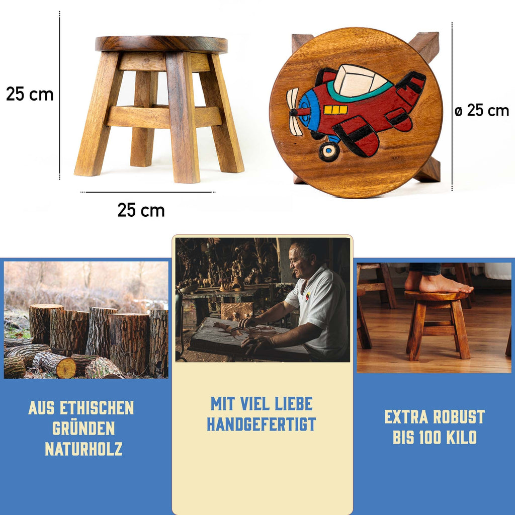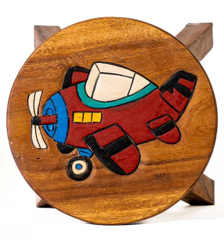 Kinderhocker Holz Hocker - motiv "Rotes Flugzeug" | Handbemalt