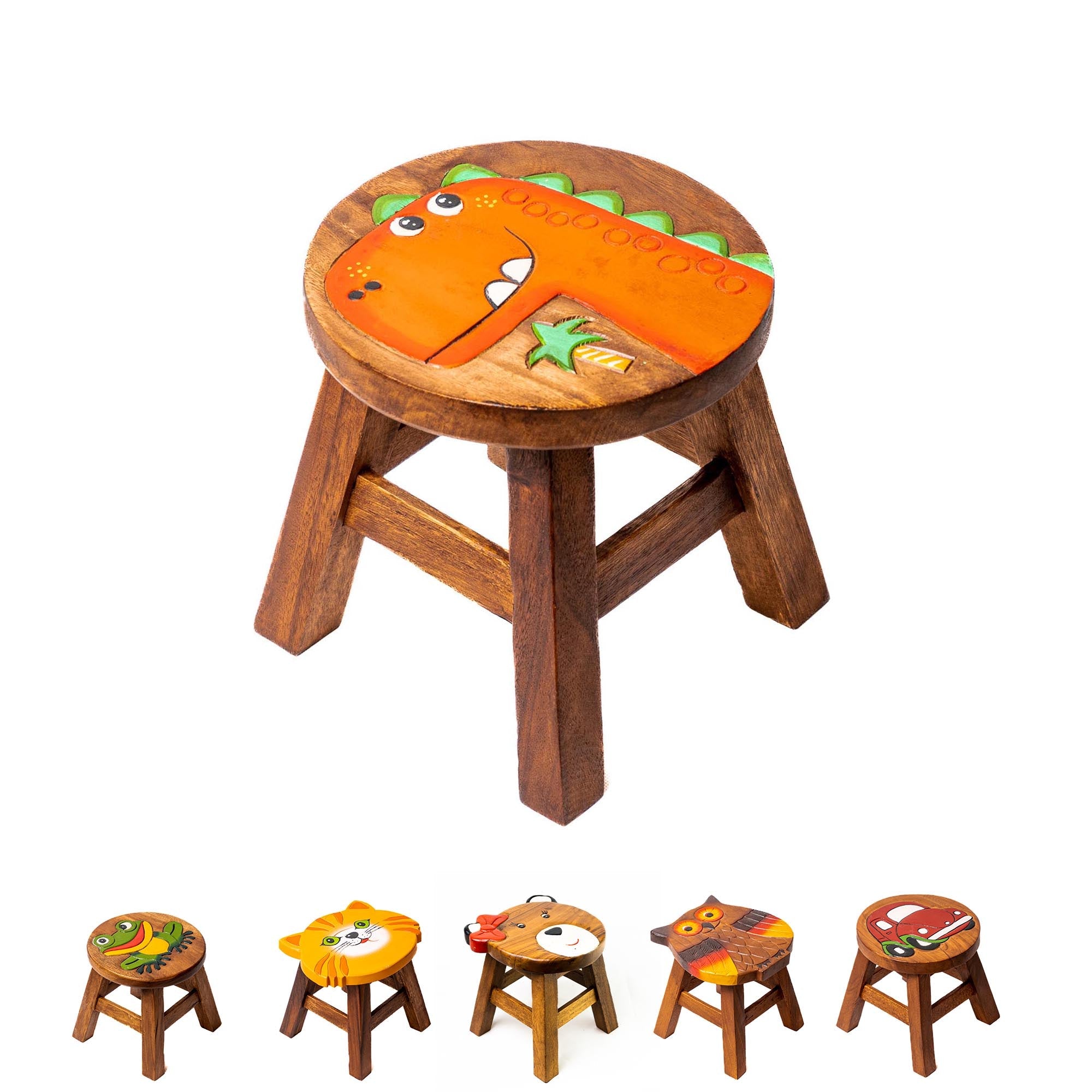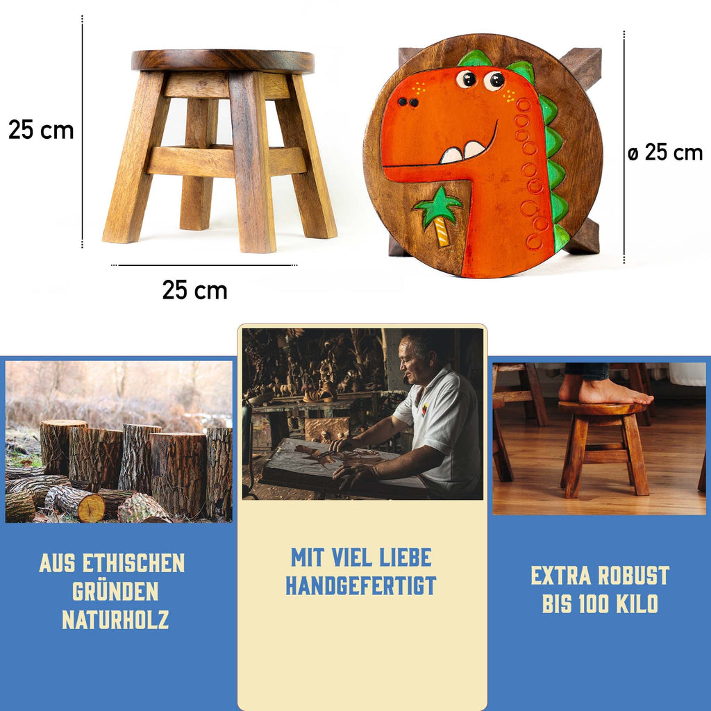 Kinderhocker Holz Hocker - Tiermotiv "Dino" | Handbemalt