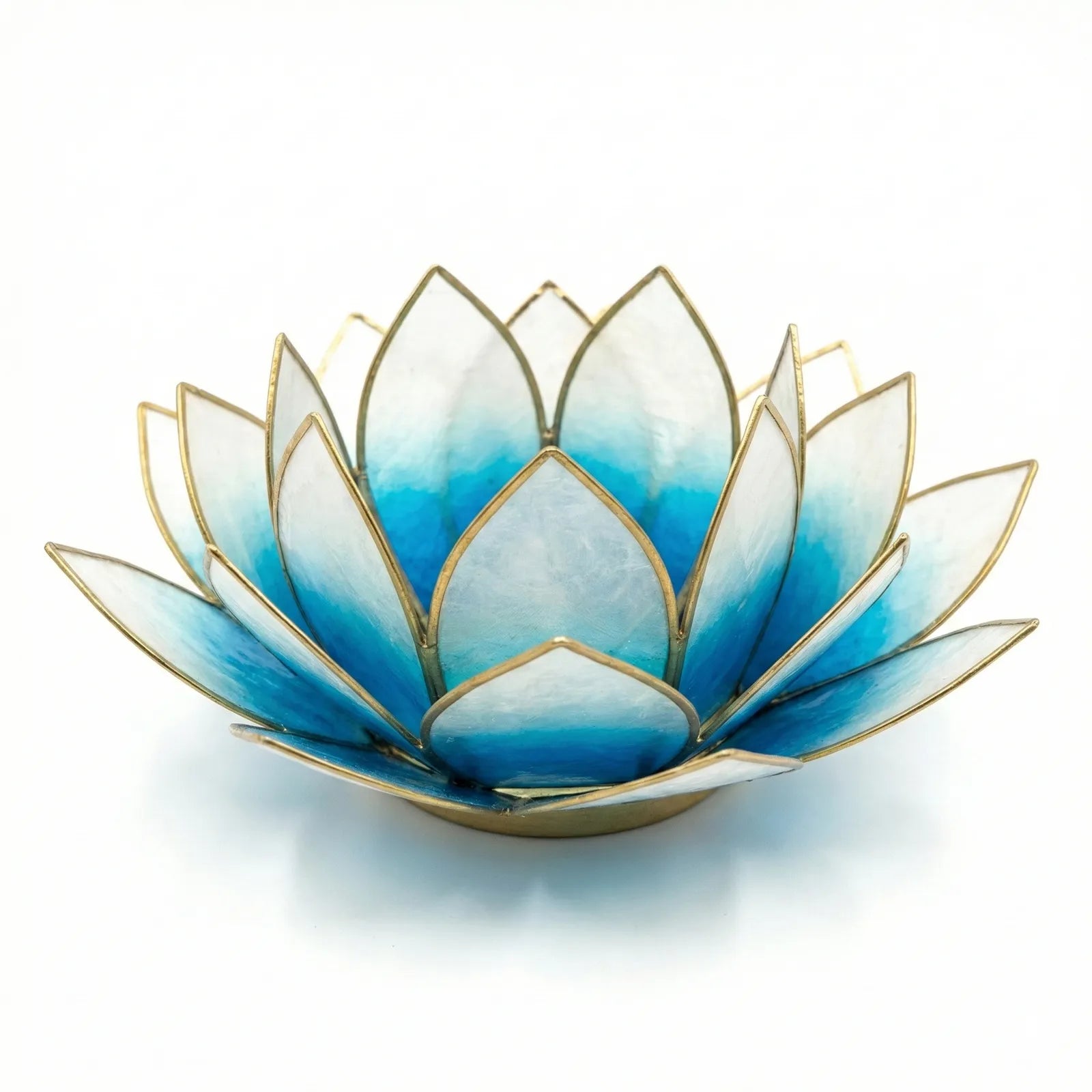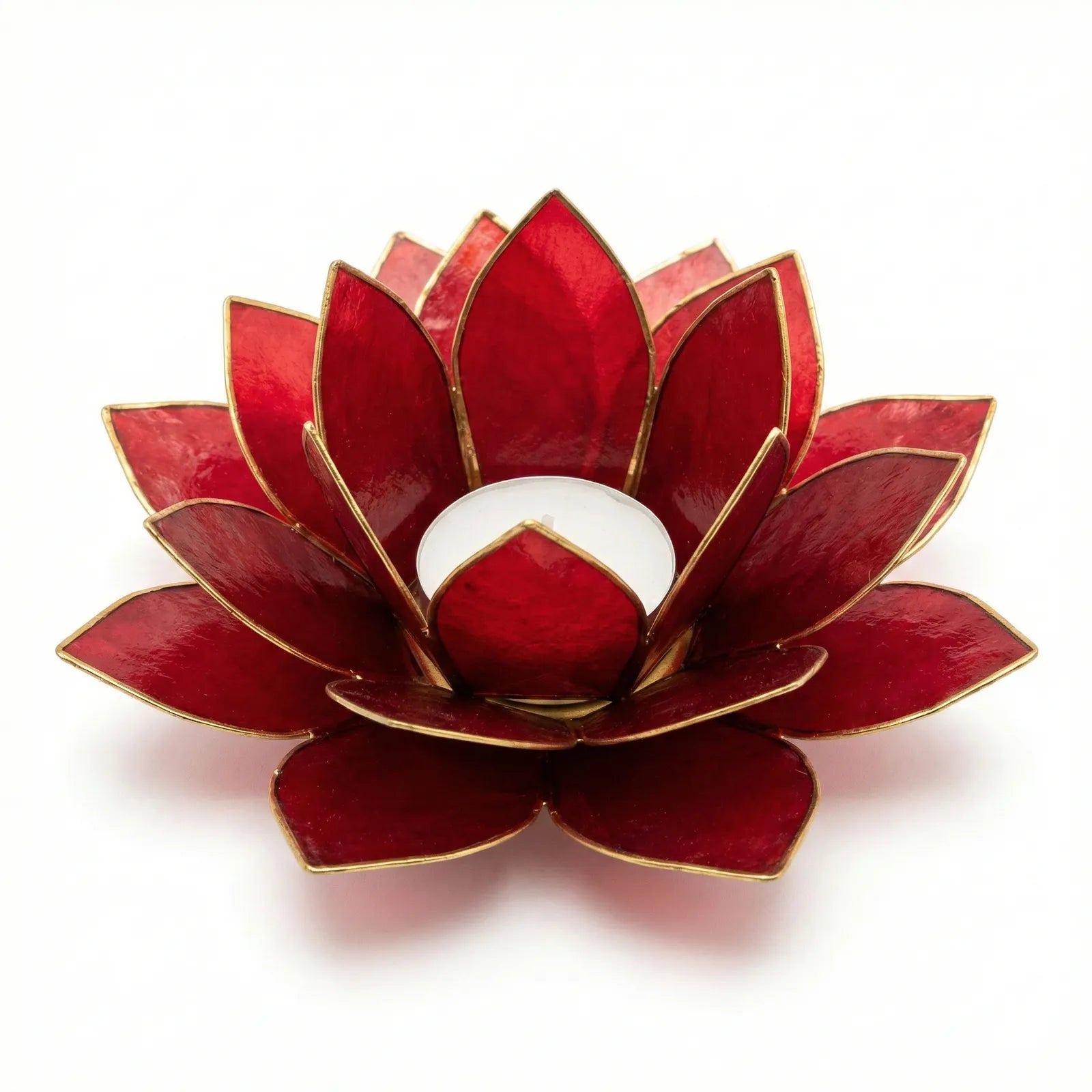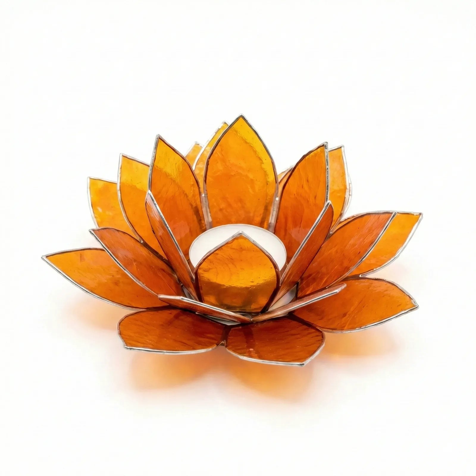 Design: Handgefertigte Lotusblütenform, erhältlich als Einzelhalter oder als 7-flammiger Lichterbaum-Ständer.