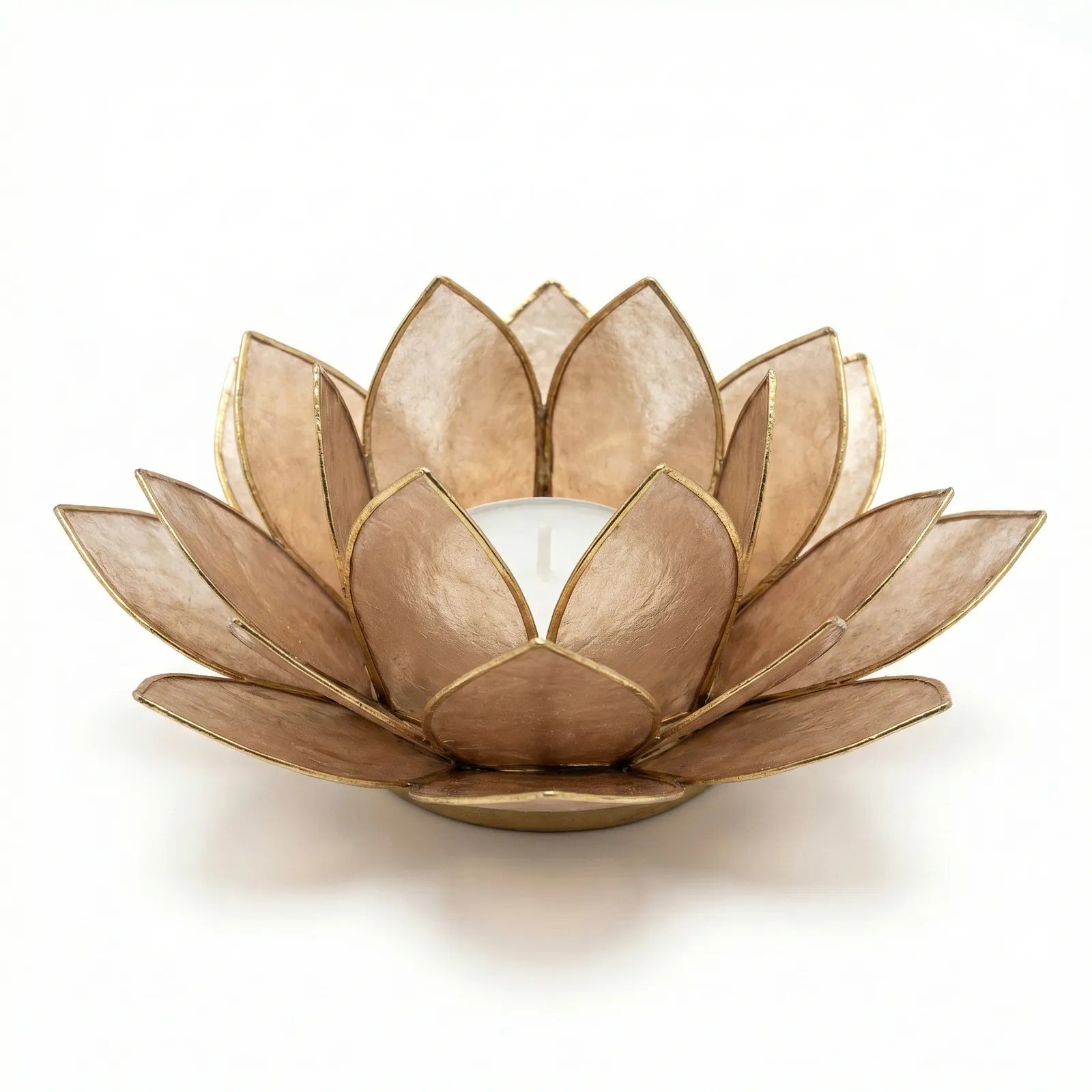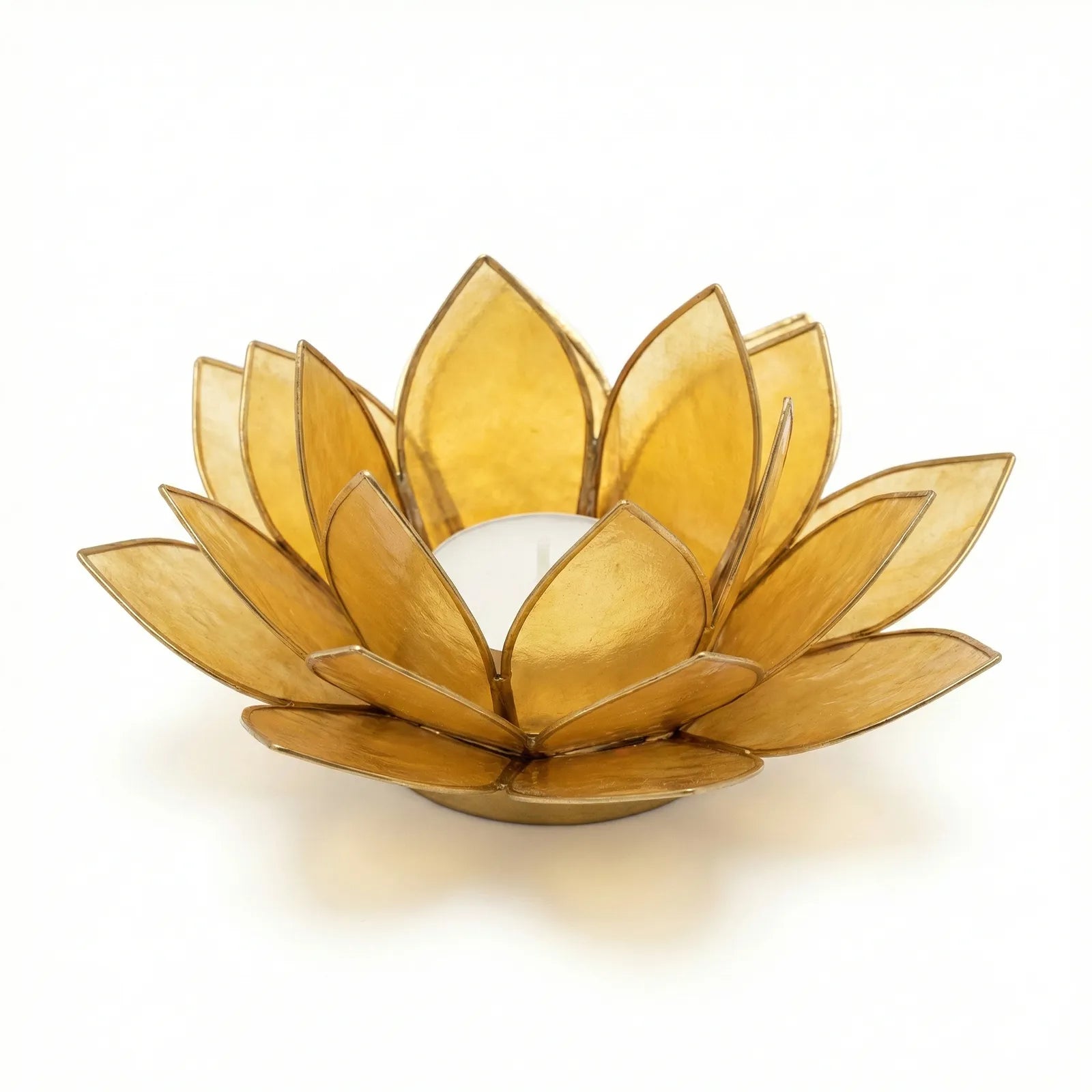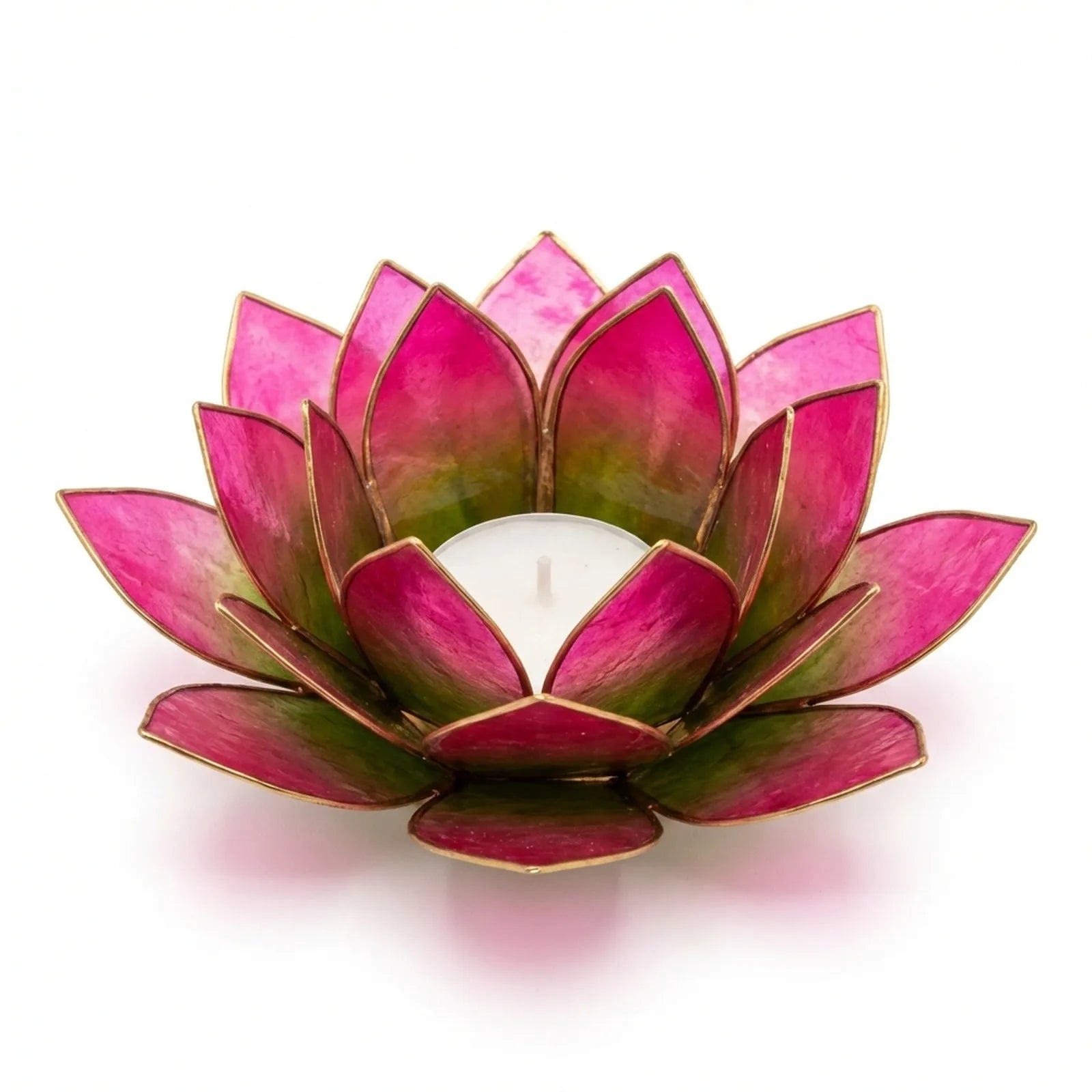 Design: Handgefertigte Lotusblütenform, erhältlich als Einzelhalter oder als 7-flammiger Lichterbaum-Ständer.