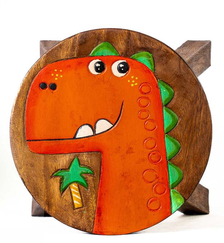 Kinderhocker Holz Hocker - Tiermotiv "Dino" | Handbemalt