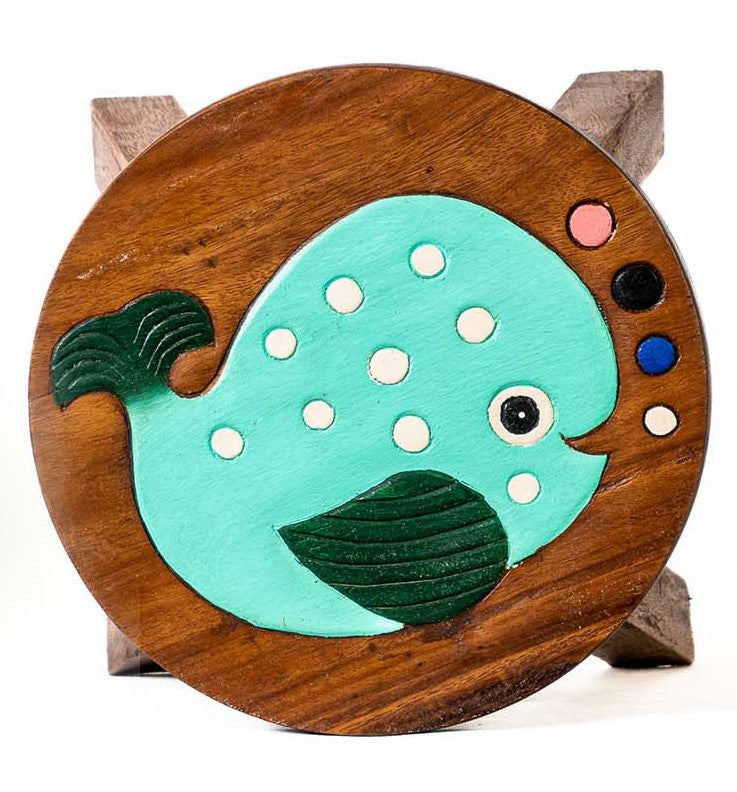 Kinderhocker Holz Hocker - motiv "Kleiner Wal" | Handbemalt