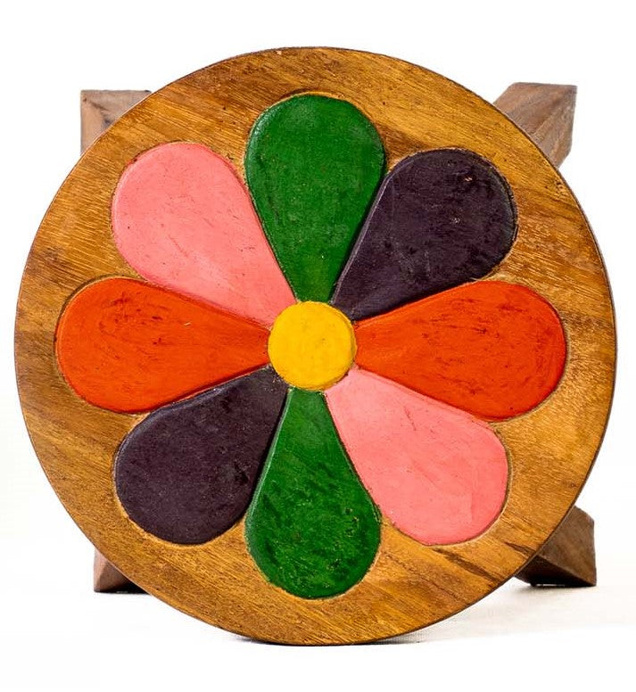 Kinderhocker Holz Hocker - motiv "Blume" | Handbemalt