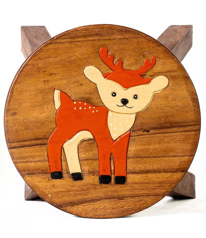 Kinderhocker Holz Hocker - tiermotiv "Reh" | Handbemalt