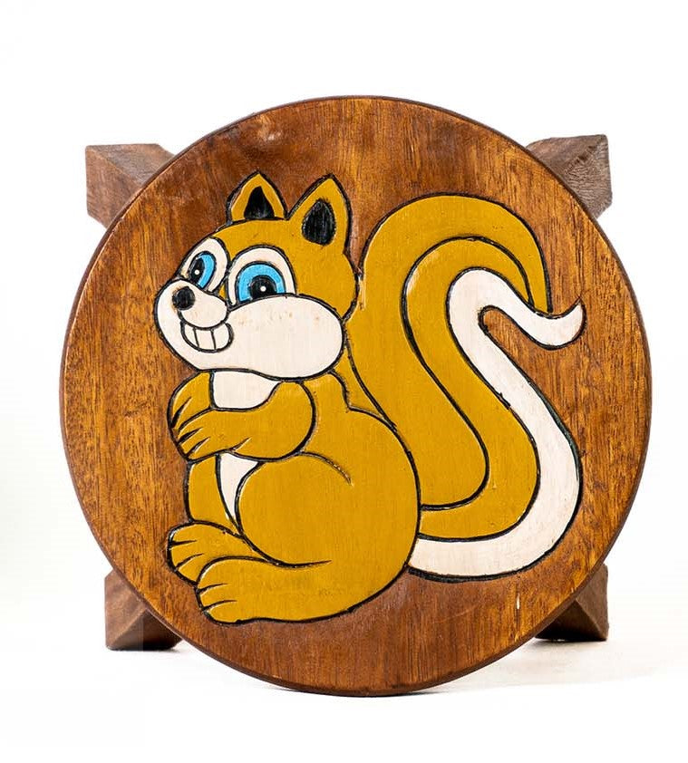Kinderhocker Holz Hocker - motiv "Eichhörnchen" | Handbemalt
