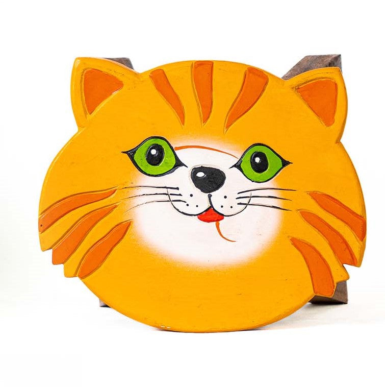 Kinderhocker Holz Hocker - motiv "Katze Bunt" | Handbemalt