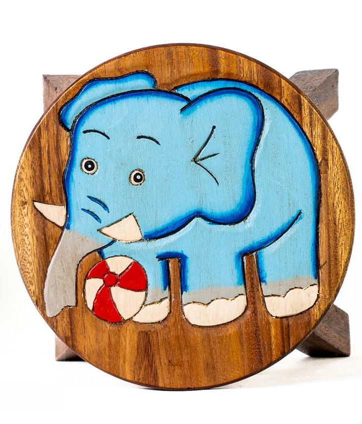 Kinderhocker Holz Hocker - motiv "Elefant mit Ball" | Handbemalt